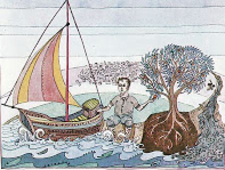 Και αυτό το πλοίο έχει ιστίο τον κορμό (αιώνιο κάθετο) του ΔΕΝΔΡΟΥ της ΖΩΗΣ!